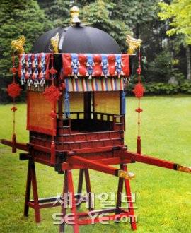 ◇노미자씨가 제31회 대한민국전승공예대전에서 매듭분야에서는 처음으로 대상작인 대통령상을 수상한 '궁 소교 매듭장식' 작품. 노씨는 매듭으로 도달할 수 있는 최고의 작품이 어떤 것인지 후대에 알려야 한다는 생각으로 이 작품을 3년간 준비했다. |