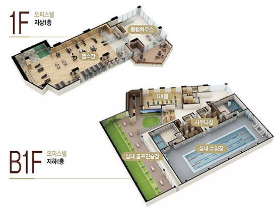 층별로 설치되는 커뮤니티시설을 살펴보면 지상 1층에 휘트니스센터와 락커룸, 리셉션룸, 휴게소 등이, 지하 1층에 실내골프연습장, 퍼팅장, GX룸, 사우나실, 3개 레인의 수영장 등이 조성된다.