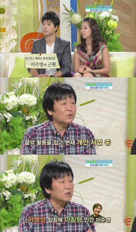 임창제는 21일 오전 전파를 탄 KBS 2TV '여유만만'에서 "이수영은 어떻게 지내느냐?"는 MC 박수홍, 최원정의 질문에 "음악 활동을 중단하고 개인 사업 중이다"라고 전했다.
