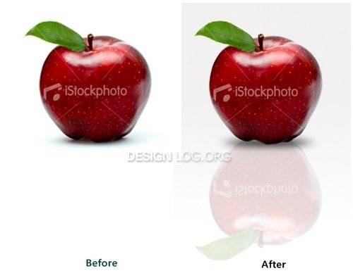 위 이미지는 아주 맛있어 보이는 사과가 무광택 테이블 위에 놓여 있는 원본 이미지를 깨끗한 하이그로시 테이블 위해 놓인 사과이미지로 합성한 결과를 비교한 것으로 반사 및 광택 효과 그리고 사실적인 그림자의 적용의 느낌을 엿볼 수 있습니다.