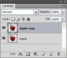 포토샵 메뉴에서 Layer > Duplicate Laye...를 클릭해서 원본 레이어를 복제합니다. 또는 'Apple' 레이어를 휴지통 아이콘 옆 새 레이어 아이콘으로 드래그앤드롭 하셔도 됩니다.