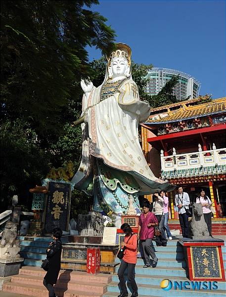 【홍콩=뉴시스】조수정 특파원 = 홍콩 리펄스베이의 틴하우 사원. 틴하우 사원은 건너가면 젊어진다는 장수교와 손으로 문지르면 아들, 딸을 점지해주거나 재물복을 안겨준다는 석상을 보기위한 관광객들로 항상 붐빈다.