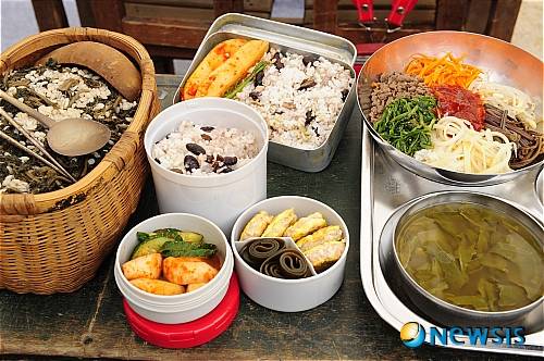 【울산=뉴시스】장지승 기자 = 30일 울산 태화강대공원에서 열린 '2010 웰빙라이프 울산'에서 울산지역 학교급식조리사회에서 선보인 시대별 도시락이 눈길을 끌고 있다.