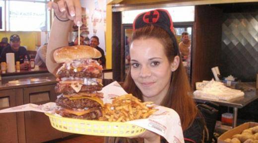 종업원들이 간호사복을 입는 등 독특한 마케팅으로 유명한 이 식당의 대표 메뉴는 바로 심장마비 버거. 소고기 패티만 0.9kg인 이 햄버거에는 치즈와 베이컨 여러 장이 들어있어, 버거 하나당 열량이 8000kcal에 달한다.