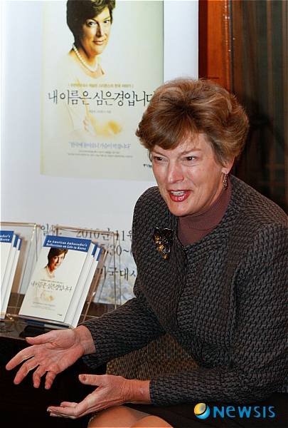 【서울=뉴시스】김상경 기자 = 캐슬린 스티븐스 주한미국대사가 17일 오후 정동 대사관저에서 '내 이름은 심은경입니다'(중앙북스 펴냄) 출간기념 기자간담회를 하고 있다.