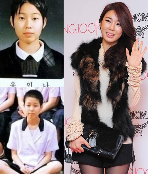 사진 속 유인나는 현재의 여성스러운 모습과 달리 반삭발을 한 것은 물론 교복 치마를 입은 채 양반다리를 하고 앉아있어 남학생을 연상케하고 있다. 지금과 사뭇 다른 모습으로 성형의혹이 제기됐다.