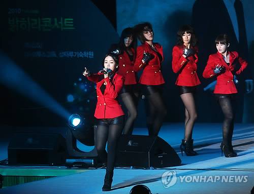 (서울=연합뉴스) 김연정 기자 = 걸그룹 티아라가 20일 오후 서울시 성북구 안암동 고려대학교 화정체육관에서 열린 '밝히리 콘서트'에서 멋진 무대를 선보이고 있다. '너의 미래를 밝히리'라는 컨셉으로 개최되는 이번 콘서트는 스타강사 11명이 수능시험을 치른 제자들을 위해 마련한 문화 행사로 약 7,000여명의 수험생을 초대해 수험생들을 격려하고 있다. 2010.11.20