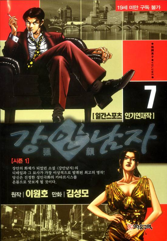 만화 '강안남자'는 하나의 소스를 멀티 미디어화하는 멀티 트랙을 제대로 구현하며 성인 만화의 성공한 콘텐트로 주목을 받고 있다. 이원호의 동명 소설이 가진 탄탄한 스토리와 김성모 작가의 맛깔나는 작화력이 결합한 이 작품은 올 초 연재 전부터 큰 화제를 모았고, 기대대로 독자를 사로잡았다. 현재 '시즌2'에서 자동차 세일즈맨인 주인공 조철봉이 부잣집 딸 임아나와 김의선을 동시에 공략하는 기상천외한 작업으로 인기몰이를 하고 있다.