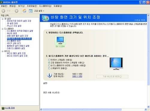 '디스플레이' - '바탕 화면 크기 및 위치 조정'을 선택하면 2번 항목에 '고정 종횡비의 NVIDIA 스케일링 사용'이라는 항목이 있다. 이를 선택하고 [적용]을 클릭하면 고정종횡비를 사용할 수 있다.