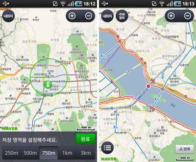 ↑네이버지도의 지도저장과 자전거 도로 표시 |