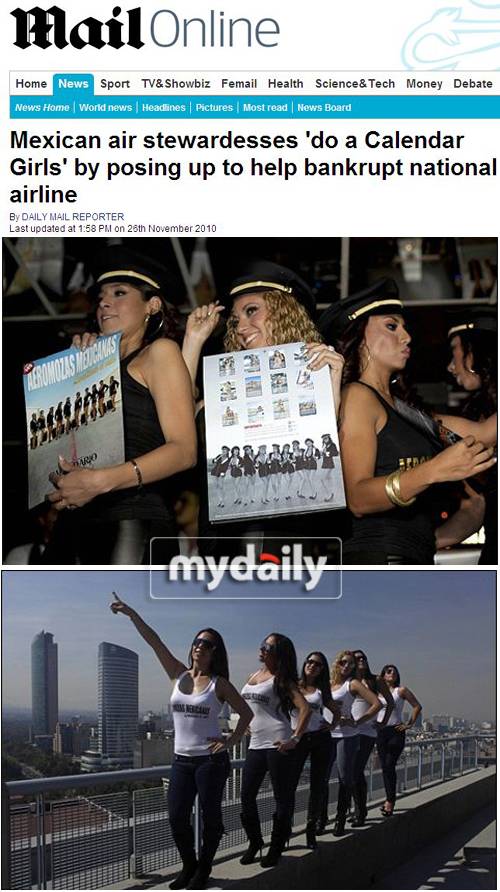 영국 언론 '데일리 메일'은 26일(현지시각) "멕시코 에어라인의 승무원들이 재정난을 겪고 있는 회사를 돕기 위하여 섹시 콘셉트의 이색 달력을 제작했다"고 전했다.