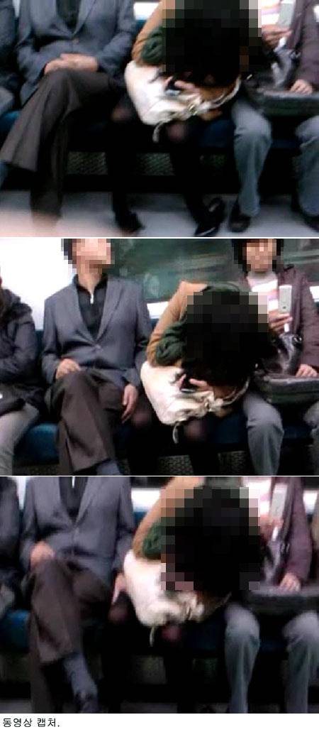 1일 인터넷 한 커뮤니티 게시판에는 지하철 성추행 장면을 우연히 본 네티즌이 이를 휴대전화로 촬영한 동영상이 등장했다. 동영상 속에서 여성은 술이 많이 취한 듯 허리를 완전히 숙인 자세로 앉아있다.