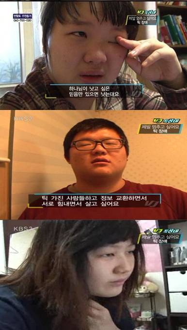 12월3일 방송된 KBS 2TV 'VJ 특공대'에서는 틱 장애로 힘들어하고 있는 사람들의 아픔을 카메라에 담았다.