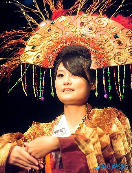 【서울=뉴시스】서재훈기자 = 12일 오후 서울 광장동 워커힐호텔 씨어터홀에서 '23회 월드미스유니버시티2010'본선 세계대회가 열린 가운데 참가자들이 각자 전통의상을 입고 패션쇼를 선보이고 있다.