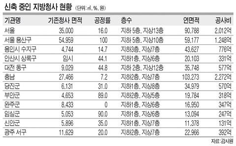 청사의 표준설계면적에 대한 기준도 제각각이다. 2002년 이후 신축한 지방청사의 1인당 평균 사무공간은 6.9㎡로 규정돼 있지만 해당 지자체에서 청사 규모 관련 조례를 제정하지 않은 곳도 많다. 이러한 조례가 없는 서울 성북구 등 5개 지자체는 1인당 평균 10.8㎡의 사무공간을 사용하고 있었다.