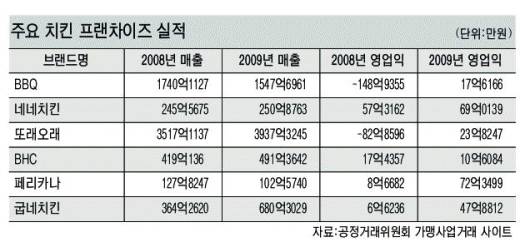 2007년과 2008년 2년 연속 영업이익 적자를 기록했던 BBQ는 가격 인상을 단행한 지난해 흑자전환에 성공했다. BBQ는 2007년 30억8635만원, 2008년 148억9355만원의 영업적자를 기록했으나 지난해에는 매출액이 전년대비 10% 이상 감소했음에도 불구 17억6166만원의 흑자를 거뒀다. 2008년 82억8596만원의 영업적자를 기록했던 또래오래도 가격을 인상한 지난해 23억8247만원으로 흑자전환했다.또래오래 관계자는 이에 대해 "또래오래 판매가 인상 외에 햄류와 가공식품 등의 매출이 신장된 결과가 반영된 것"이라고 설명했다.페리카나의 경우 지난해 매출이 20억 가량 감소했음에도 불구 영업이익은 전년대비 영업이익이 8.5배나 급등했으며 네네치킨과 굽네치킨의 영업이익도 상승했다.이처럼 치킨브랜드들이 매출상승률 대비 영업이익 상승률이 높게 나타난 것은 치킨 가격 인상금액이 상당수 본사의 수익으로 이어졌음을 반증한다.