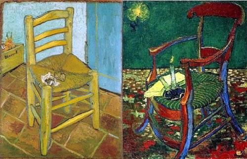 ◇'빈센트의 의자와 그의 파이프'(반 고흐, 런던 내셔널 갤러리)와 '고갱의 안락의자'(반 고흐, 암스테르담 반 고흐 뮤지엄). |