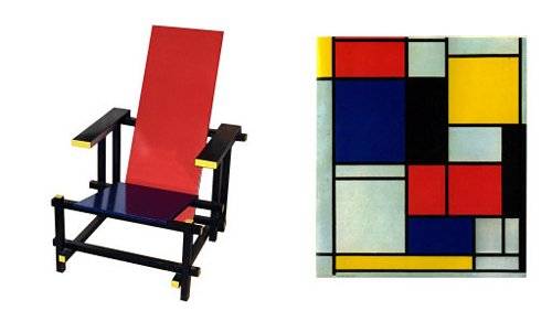 ◇리트벨트의 '적청 팔걸이 의자'(1918년)와 몬드리안의 컴포지션 연작. |