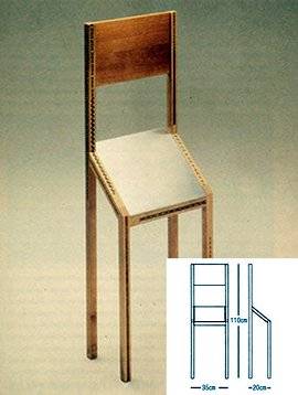 [세계일보]밀라노 출신의 예술가이자 디자이너인 브루노 무나리(1907∼1998)는 1945년 '짧은 방문을 위한 의자'를 선보였다. 3㎝의 호두나무 각목으로 짜여진 이 의자는 너비와 등받이 높이는 여느 의자와 다를 바 없지만 앉는 자리의 깊이가 20㎝로 정상적인 의자의 반도 채 안 되는 데다 45도 아래로 기울어져 있어 의자가 가져야 하는 편하고 아늑한 특징은커녕 제대로 앉기조차 힘들게 디자인됐다. 의자로서의 기능이 의도적으로 제거되어 예술 오브제로 변한 이 '짧은 방문을 위한 의자'는 예술과 디자인의 경계에 걸쳐진 가장 아이러니한 예로 손꼽히는 작품이다.