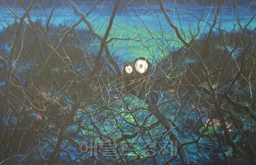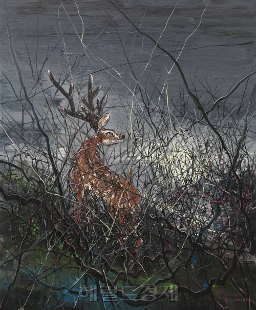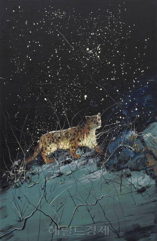 -요즘은 동물 그림에 푹 빠져 있다던데▷맞다. 사슴, 원숭이 등 동물그림을 많이 그리고 있다. 순정한 동물의 모습에 감동받을 때가 많다. 또 동물을 통해 생명과 죽음의 순환구조를 이야기하고 싶다. 동물의 눈은 사람의 그 것처럼 그리기도 한다. 지난해 크리스마스 이브에도 마음에 쏙 드는 동물그림을 그렸다. 모두들 왁작지껄 몰려다니는 날, 작업실에 우두커니 앉아 있었는데 마침 창밖으로 눈이 오더라. 아, 막 표범이 그리고 싶어 미친 사람처럼 표범을 그렸다. 아주 멋진 그림이 나왔다. (휴대폰 속 그림을 보여주며) 멋지지 않나? 하하.
