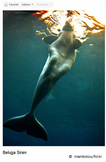촬영자는 2008년 물 위를 내다보는 벨루가 고래를 촬영한 것이라고 설명한다. 사진을 접한 누리꾼들은 "인어의 전설이 이런 장면을 보고 만들어 진게 아닐까?", "정말 여자처럼 보여. 환상적이네요" 등 신기하다는 반응이다. (사진출처 : 온라인 커뮤니티)