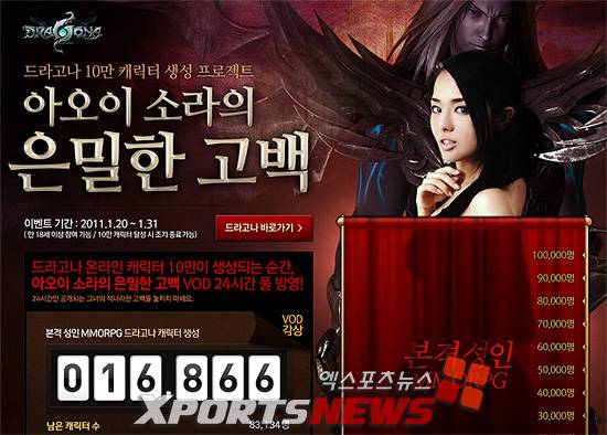 게임 내에서 생성되는 캐릭터 수가 일정 수를 넘어서면, 이 게임의 홍보 모델인 일본 배우 '아오이 소라'의 '은밀한 고백' 영상을 공개하겠다는 것.