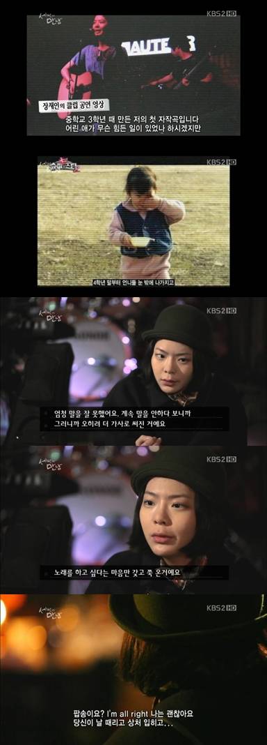 이날 장재인은 음악을 하기 위해 고등학교를 자퇴한 사연을 전하며 "음악만이 나한테는 하나의 돌출구였다. 나를 표현할 수 있는 진짜 단 하나뿐인 방법이었다"고 말했다.