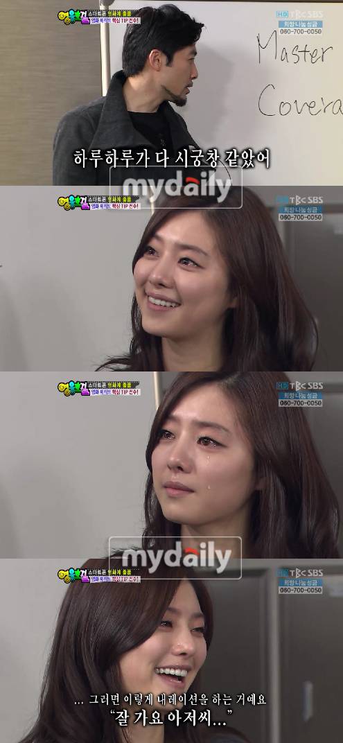 [마이데일리 = 강선애 기자]배우 홍수아가 예능 프로그램 녹화현장에서 순식간에 이별연기에 몰입, 눈물을 뚝뚝 흘려 여배우다운 면모를 과시했다.