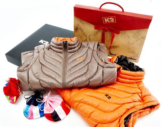 K2 '나비드'와 '오델리아'는 저데니어 겉감과 최고급 헝가리산 구스다운을 사용해 경량성과 보온성이 우수한 것이 장점이다.
