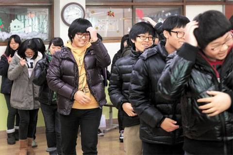 지난달 28일 오후 경기도고양시일산서구 일산중학교 3학년 6반 교실에서는 학생들의 노랫소리가 흘러나왔다. 한 뮤지컬에 삽입됐던 노래 '서머 나이트'를 개사한 '윈터 나이트'에 맞춰 25명의 학생이 졸업식장에서 선보일 노래와 춤을 연습하고 있었다. 남학생들이 허리를 튕기며 여학생들에게 다가가는 동작이 나올 때마다 수줍어하는 남학생들의 모습에 여학생들은 웃음을 터뜨렸다.
