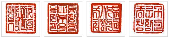 정부 기관의 관인. 좌측부터 행정자치부장관, 외교통상부장관, 국가보훈처장, 종로구청장의 관인공문서에 찍히는 관인이 63년만에 알아보기 쉽게 바뀐다. 행정안전부는 6일 '사무관리규정 시행규칙'을 개정해 관인의 양식을 '한글 전서체'에서 '한글'로 바꿔 시행한다고 밝혔다.
