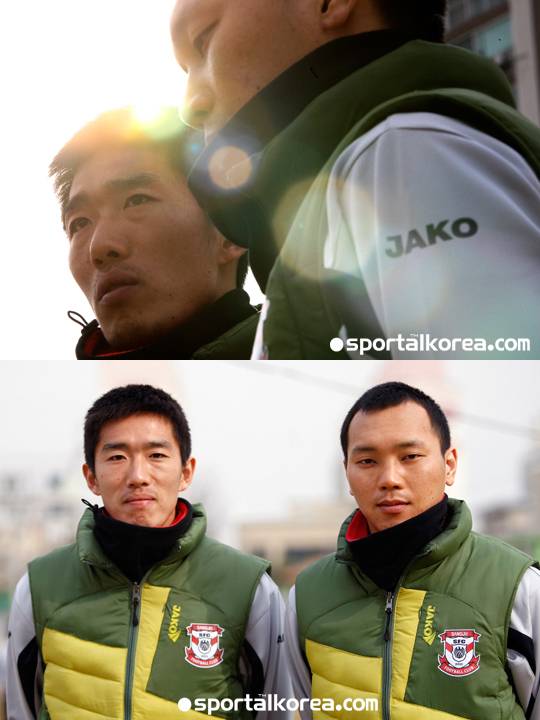 [스포탈코리아=광양] 안기희 기자= 나란히 서 있다는 것이 낯설 정도다. 짬밥(?)은 '하늘과 땅 차이'이지만 두 선수의 모습은 전혀 어색하지 않다. 상주 상무의 '상병' 김정우(29)와 '이병' 김치우(28)의 이야기다. 사회에서는 선의의 경쟁자이자 친한 동료였지만 상무에서는 선후배 사이가 된 그들에게도 새로운 시즌을 맞이하는 각오는 희망이 넘친다.