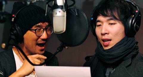 지난 28일 오후 서울 강남구 논현동 플럭서스(Fluxus) 스튜디오에서 가수 이한철씨가 오토튠으로 사용할 음원을 만들기 위해 본지 전지인 인턴기자의 노래를 코치하고 있다. 오토튠(Auto - Tune)은 미국 '안타레스 오디오 테크놀러지스'사가 1997년 개발한 음조 보정용 소프트웨어로 노래나 악기 연주에서 음계를 벗어난 음을 정확하게 맞춰주는 프로그램이다.