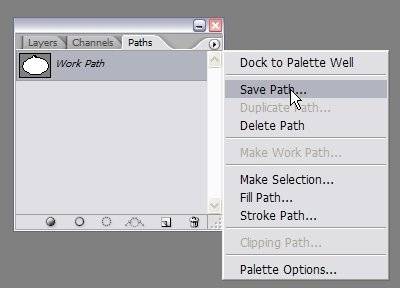 2. 다음 패스 팔레트의 Work path가 선택된 상태에서 팔레트 우측 확장 메뉴를 열고 Save Path(패스 저장)합니다.