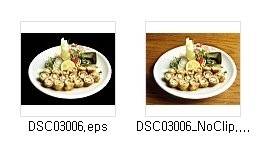 7. 참고로 클리핑패스가 적용된 이미지와 일반 패스가 적용된 이미지를 EPS 파일로 저장했을 때 윈도 탐색기 미리보기에서도 그 차이가 구분됩니다. 클리핑패스가 적용된 이미지는 배경이 검정색으로 보이는 반면 그렇지 않은 이미지는 원본이미지와 같이 배경이 모두 보입니다.