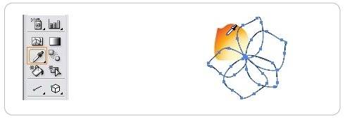 나머지 색상이 적용되지 않은 꽃잎을 선택하고 툴 박스에서 Eyedropper Tool을 선택 그라디언트 컬러가 적용된 꽃잎을 클릭하여 나머지 꽃잎에도 색상을 채웁니다. 그런 다음 각각의 꽃잎을 선택하고 적당한 방향대로 그라디언트를 조정해 줍니다.