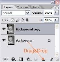 3. 위 이미지처럼 Background Layer를 드래그앤드롭(Drag & Drop)하여 복사합니다.