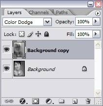 6. Background Copy Layer 블렌드모드(Blend Mode)를 Color Dodge 모드로 변경합니다.