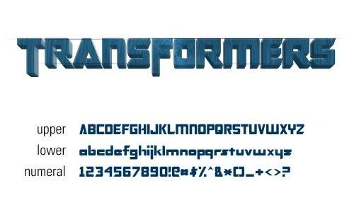 영화 트랜스포머 포스터 타이틀에 사용된 폰트 정보를 간략하게 살펴보면 아래와 같다.