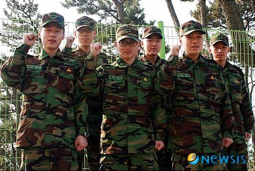 실족여성을 발견해 신속한 보고와 신고를 한 정시욱(앞줄 가운데) 일병과 레이더기지 장병들.(사진=53사단 제공)