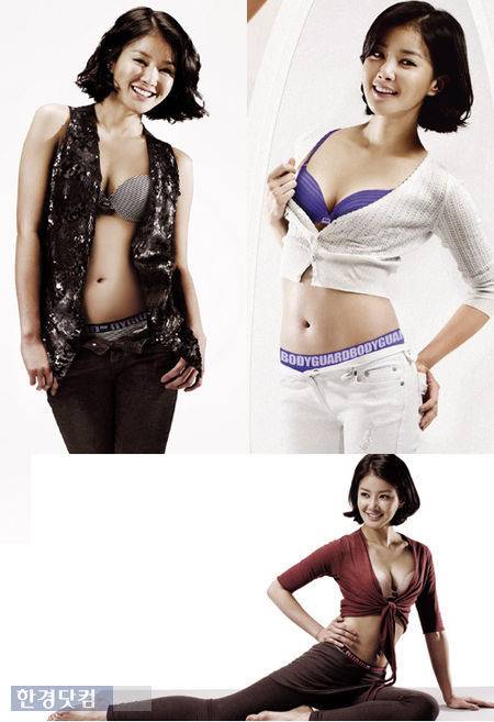 특히 이시영은 핑크베이지 컬러의 언더웨어에 깊게 파인 탑과 레깅스를 매치하여 볼륨감 있는 가슴선을 강조했으며 화이트 스키니 진 위로 노출된 아웃밴드는 착용감을 높일 뿐 아니라 가슴에서 골반까지 이어지는 허리라인을 매끈하게 잡아주어 섹시함을 더했다.