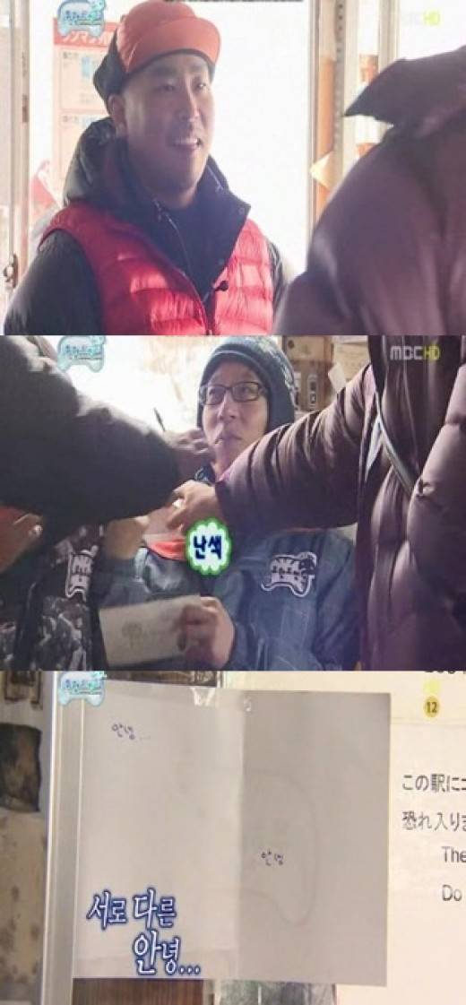 26일 방송된 MBC TV '무한도전'에서는 일본 훗카이도를 배경으로 '오호츠크해 특집'이 전파를 탔다. 이날 멤버들은 오흐츠크해로 가기 전 '기타하마 역'에서 기차를 기다리며 각자의 메시지를 남기기로 했다.