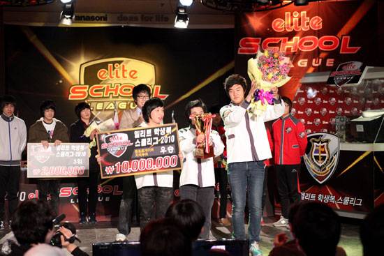 프로게이머의 산실 '2010 엘리트학생복 스쿨리그'(이하 엘리트스쿨리그)가 6개월간의 대장정을 마무리했다. 지난해 9월 온라인 예선전을 시작으로 전국 초·중·고등학교 16개팀이 아마추어 최강자를 가리는 본선전을 펼쳐 서울아이티고등학교가 새로운 최강팀에 등극했다. 또 6회째인 이번 엘리트스쿨리그에서는 당진중학교가 결승전에 진출하는 등 유례없는 중학교 돌풍이 부는 등 숱한 화제를 낳았다.