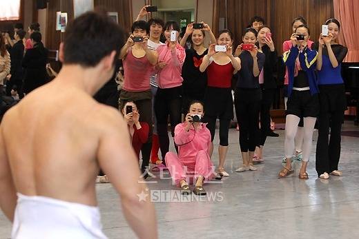 발레 연습 내내 진지했던 무용수들은 연습이 끝나고 '발레리노'팀에 몰려들어 기념 촬영을 했다. '발레리노'의 인기를 확인하는 순간이었다.