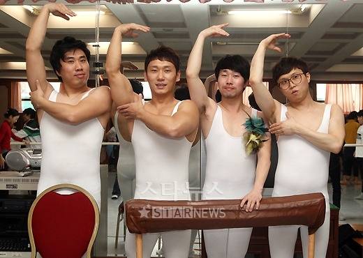 이준규 발레 마스터의 구령 아래 20여 명의 남녀 무용수들이 반주에 맞춰 몸을 풀고 있다. 부드러운 무용수들의 움직임 사이에 하야 타이즈를 입은 4명의 남자들이 허둥대고 있다. KBS 2TV '개그콘서트'의 '발레리노' 코너의 정태호, 이승윤, 박성광, 양선일이 그 주인공들이다.