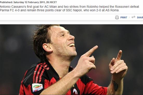 AC 밀란은 13일 오후(이하 한국시각) 산 시로 스타디움에서 열린 2010/11시즌 이탈리아 세리에 A 29라운드 홈 경기에서 1-1 무승부를 기록했다. 이로써 밀란은 전날 브레시아와 1-1로 비긴 인터 밀란과의 승점 차를 5점으로 유지했다.