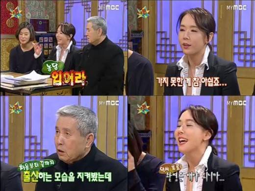 16일 방송된 MBC TV '황금어장 - 무릎팍도사'에는 강수연과 예지원이 임권택 감독을 응원하기 위해 출연, 입담을 과시했다.