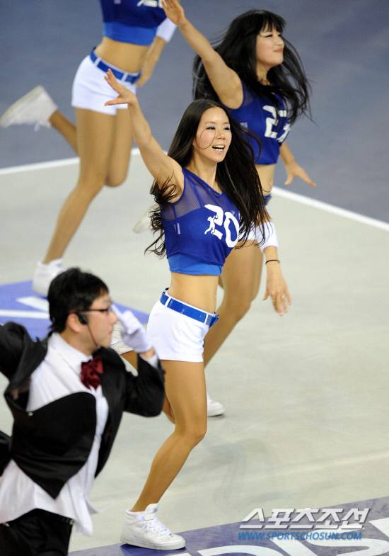삼성화재가 먼저 웃었다! 7년연속 포스트시즌 맞대결을 펼친 현대캐피탈과 삼성화재의 2010-2011 프로배구 남자부 플레이오프 1차전이 23일 오후 천안유관순체육관에서 펼쳐졌다. 현대캐피탈 치어리더가 멋진 댄스로 흥겨운 무대를 펼치고 있다. 천안=허상욱 기자 wooks@sportschosun.com