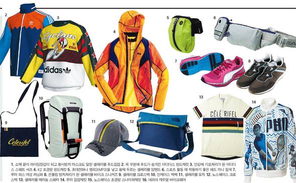 긴 겨울은 끝났다. 꽃샘추위의 시샘은 여전하지만 그래도 봄이다. 겨우내 집 안에서 잠자던 자전거 먼지를 털고 야외에서 따뜻한 햇살과 봄바람을 느끼며 스피드를 즐길 때다. 자전거 마니아들은 자전거에 들이는 돈과 시간, 노력만큼이나 패션에도 신경을 쓴다. 엠티비(MTB) 산악용 자전거를 타는 이들이라면 땀을 배출하고 체온 유지에 좋은 기능성 바이크룩을 선호하겠으나 픽시 바이크, 미니벨로, 스트라이다 등 패셔너블한 자전거를 즐겨 타는 이들은 다르다. 자전거를 생활의 일부로 즐기는 이들은 자전거 위와 아래가 다르지 않은 스트리트 패션을 선호한다. 이경빈 에디터는 "일본에서는 시티캐주얼에 아웃도어를 믹스매치한 스타일이 붐"이라며 "많은 자전거 라이더들을 만나 보면 자신의 취향에 따라 아웃도어와 바이크웨어, 캐주얼한 의류의 믹스매치를 통해 개성을 표현한다"고 말했다.