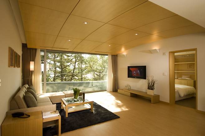 각각의 건물은 지형 흐름에 따라 유기적으로 배치해 낮은 층 객실에서도 바다와 섬 그리고 골프 코스를 조망할 수 있다. 디자인 또한 발군이다. 원룸 스타일의 '스튜디오 스위트(35평형)' 의 경우 출렁이는 파도들이 빛에 반사되어 만들어 내는 다양한 느낌을 모티브로 해 디자인했다. 모던하면서도 섬세하고 세련된 감성이 느껴진다.